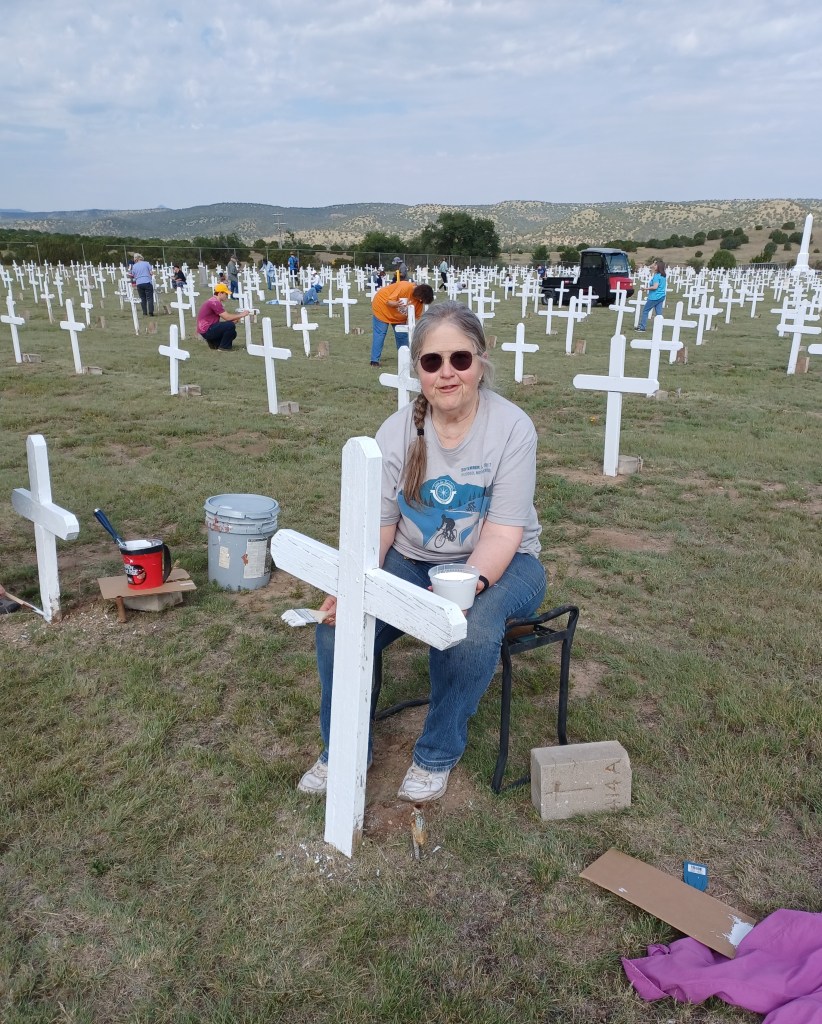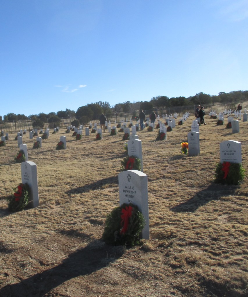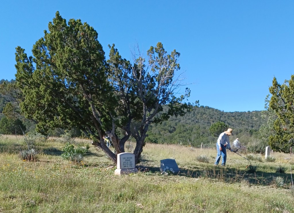 We join with community groups to place U.S. Flags at veterans’ graves at Fort Stanton Veterans Cemetery in May for Memorial weekend and wreaths in December. We pass out U.S. Flags to children at the Smokey Bear Independence Day Parade. Historical preservation projects have included painting the white crosses at the Fort Stanton Merchant Marine Cemetery and cleaning up the Old Fort Cemetery.